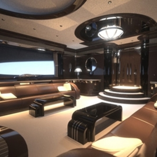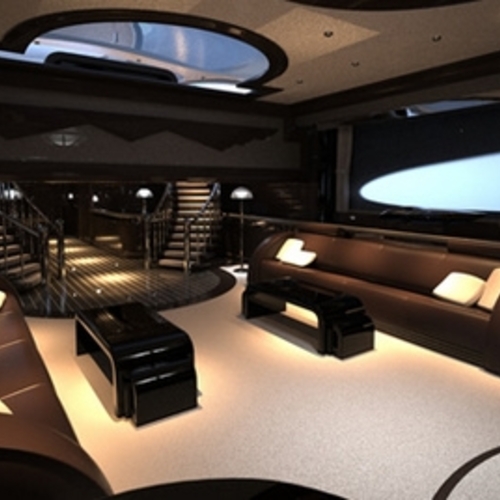 На яхте - четыре двухместные каюты и большая кают-компания. Во всех каютах – плазменные панели по 52 дюйма и мощные аудиосистемы Bang & Olufsen.