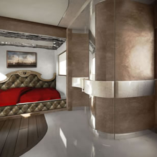 На борту «палаццо» - автоматические системы управления, в том числе климат-контроль. Внутренне расположение мебели и функциональных узлов в помещениях автодома можно менять в зависимости от желания его обитателей. Хорошее настроение обеспечит мощная система мультимедиа, а большая «плазма» может выполнять роль как телевизора, так и специального демонстрационного экрана для организации дискотек во время остановок.