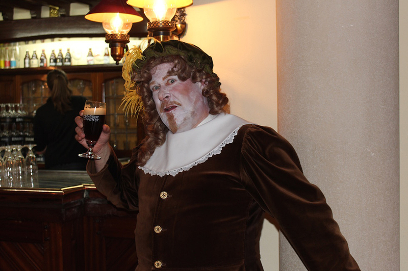 На снимке ниже — Адриан Браувер (Adriaen Brouwer), бельгийский художник, в честь которого названы 2 сорта местного пива. У него в руке бокал с карамельным хмельным, содержание алкоголя в котором — 8,5 об. Между прочим, во многих (практически всех) сортах пива местного кегового разлива спирта не меньше. Итог: пенное довольно крепленое. Так что знай меру, когда жадно будешь присасываться к бокалу с настоящим бельгийским пивом.