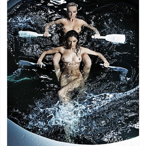 Активный отдых на воде вместе с оголенными девушками.