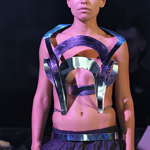 Эпатажные наряды AMORAL стали воплощением фантазии молодого украинского дизайнера Виталия Маньковского. У девушек-моделей, показавших в Museum Le Club колекцию нарядов AMORAL, были особенные аксессуары и вещи из металла, созданные по специальной технологии.