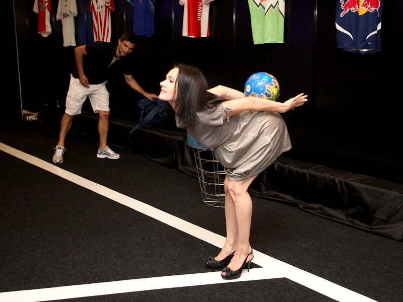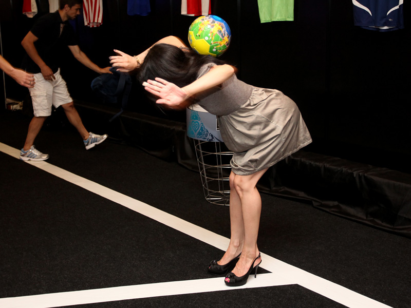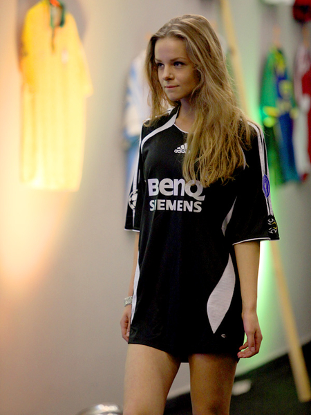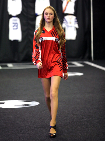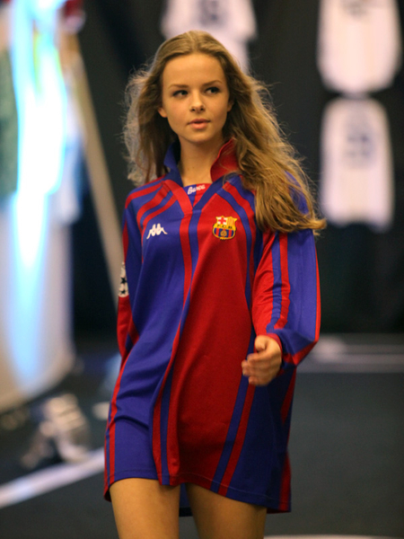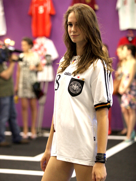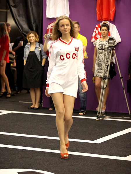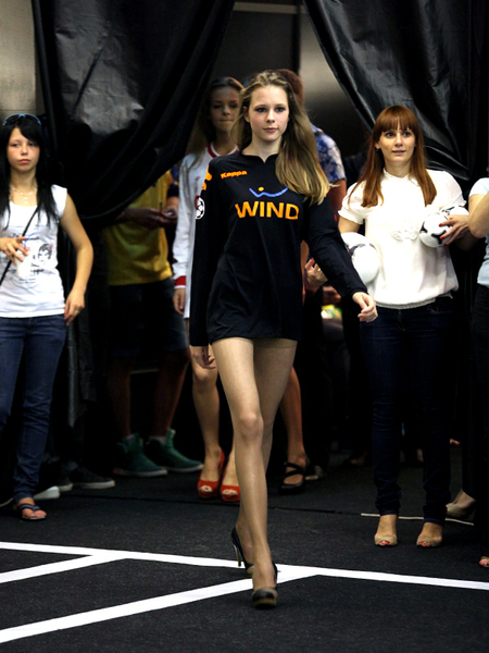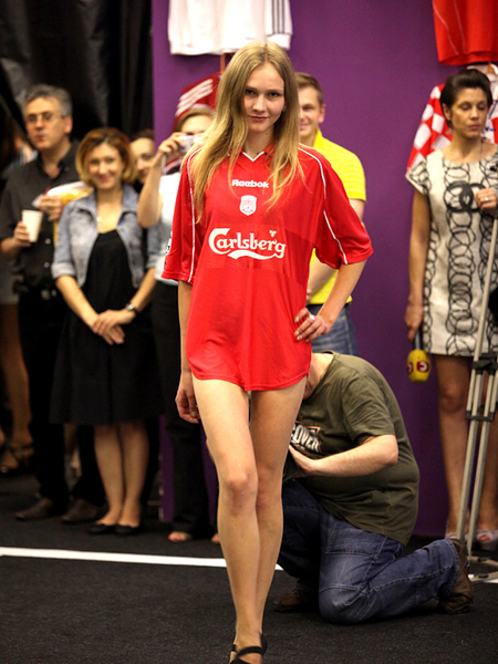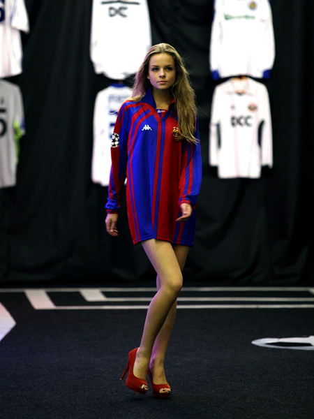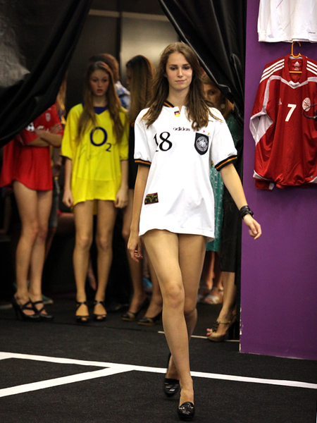 Сегодня, в день открытия чемпионата Европы по футболу Евро-2012, в Киеве прошел необычный показ футбольной моды. По подиуму ходили симпатичные девушки-модели в футболках легенд мирового футбола.