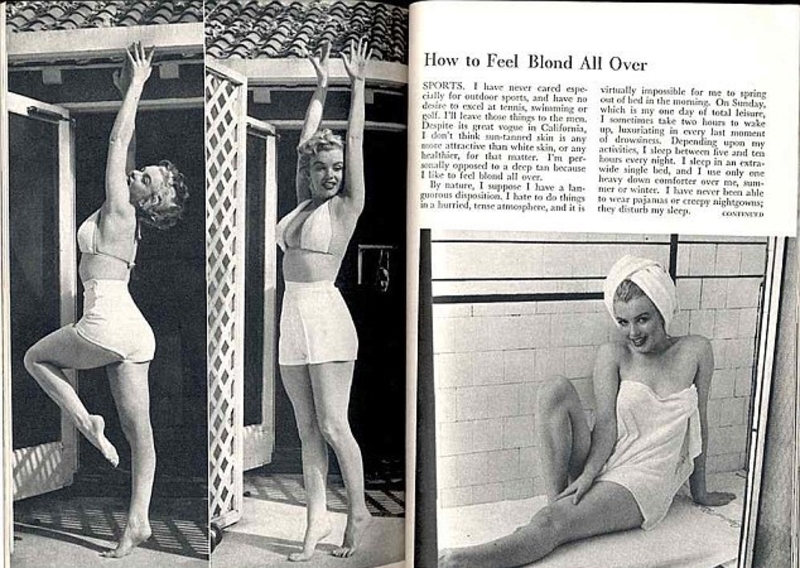 Прежде, чем сняться в мюзикле по одноименной книге Аниты Лус "Джентльмены предпочитают блондинок", Мэрилин Монро фотографировалась для обложки американского глянца Life. Для того, чтобы хорошо смотреться на обложке журнала, красавице пришлось хорошенько попотеть. Как считаешь, чем она занималась?