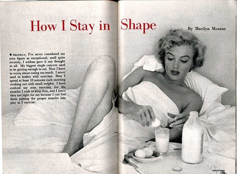 Завтракала Монро так же скромно, как и тренировалась: стакан теплого молока и взбитые яйца. Но это не помешало ей стать одним из первых и самых популярных секс-символов планеты.
