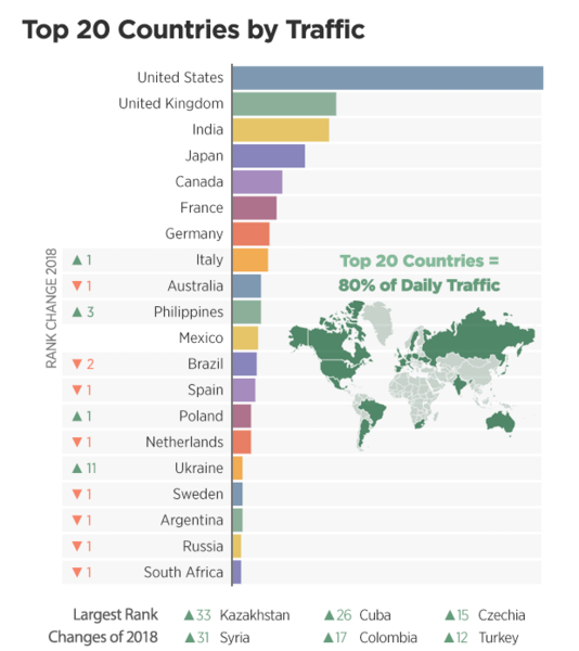 В 2018 году украинцы стали значительно больше смотреть порно. Если в 2017 году Украина была на 27 месте, то в 2018 страна поднялась на 11 позиций и теперь занимает 16 место. В рейтинге Украина обошла Россию, Аргентину, Швецию и Южную Африку.