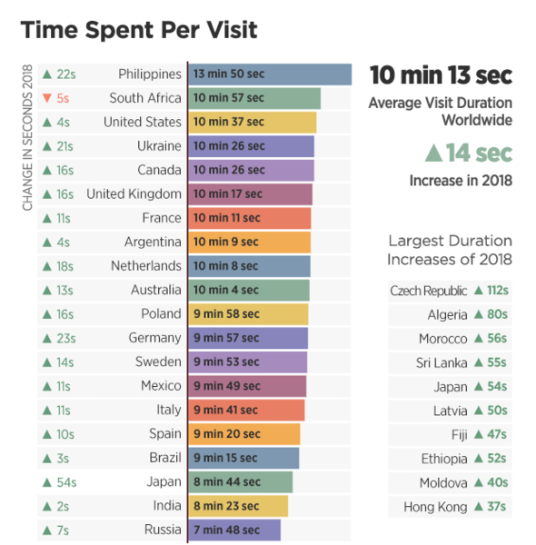 Также украинцы стали на 21 секунду дольше находиться на сайте Pornhub. Среднее время пребывания пользователя из Украины на сайте составляет 10 минут 26 секунд. Для сравнения, дольше всего на сайте сидят филиппинцы - 13 минут 50 секунд, а русские всего лишь 7 минут 48 секунд.