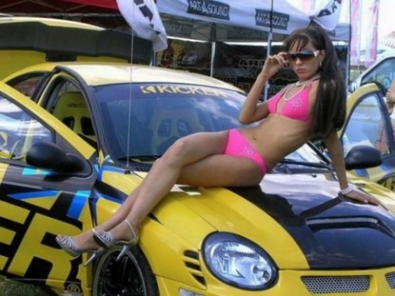 Порой главными героинями автомобильных перформансов становятся вовсе не «стальные кони», а красотки с упругими бюстами