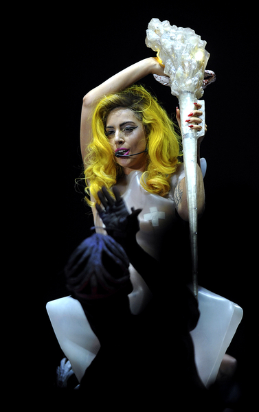 У Lady Gaga остается все меньше идей для концертных костюмов – на этот раз она ограничилась обычной клеенкой. Впрочем, получилось довольно неплохо: особенно в комплекте с монашеским апостольником на голове.