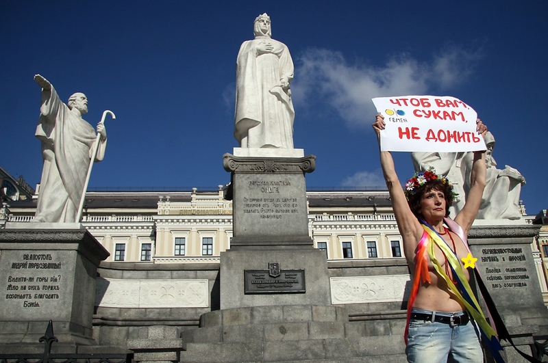 Женское движение FEMEN работает, не покладая ни рук, ни остальных частей тела – в этом киевляне убеждаются практически ежедневно. Вот и сейчас, в разгар весны, пожилая активистка Ольга Сергеевна вышла на Михайловскую площадь, дабы потребовать справедливости.
