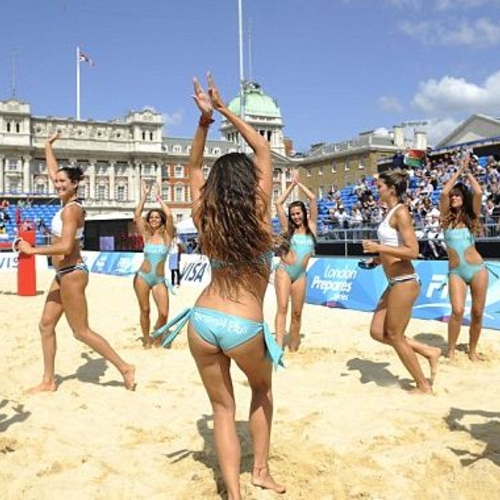 И не беда, что никаких пляжей в Лондоне нет. Ради эротичных игрищ, тоннами песка усыпали стадион Horse Guards Parade, что невдалеке от Букингемского дворца.