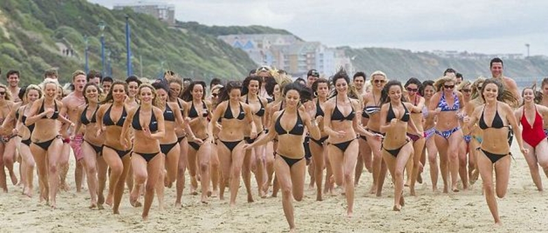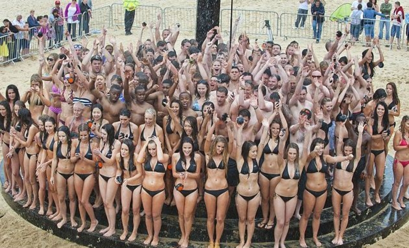Настоящий мировой рекорд (и заодно усладу для мужских глаз) устроили в курортном местечке Борнмут, что в Британии. Десятки симпатичных девушек в бикини решили принять душ прямо на пляже. Благо, сильная жара благоприятствовала массовому раздеванию.