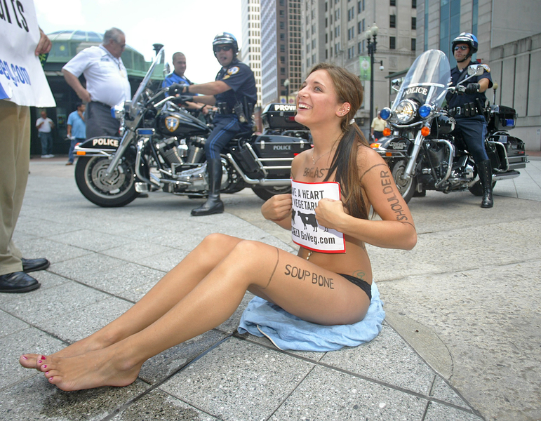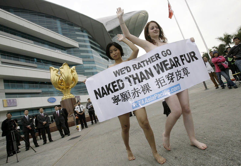 Так, двое активисток PETA из США – Трэйси Паттон и Мегган Андерсон – попались в руки российской полиции как раз во время голой акции: дамочки устроили целый пикет против ношения кожаной одежды. Держа в руках плакаты, гласящие «У тебя есть своя кожа. Кожу животных оставь им», активистки принялись разоблачаться прямо на улице в центре Москвы.