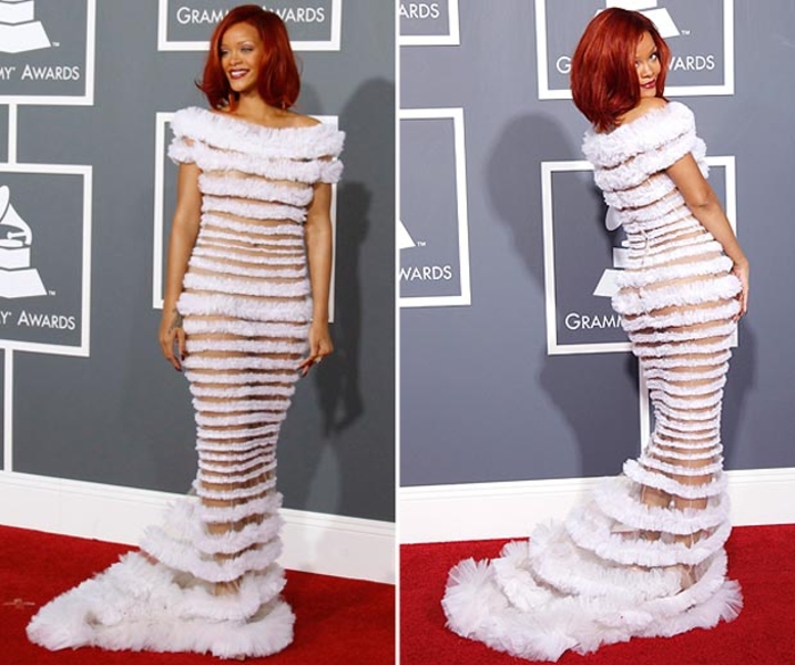 Чувствуя стремительно нарастающую моду на эпатажные и откровенные наряды, специально создаваемые под награждение лауреатов главного приза Ассоциации звукозаписывающих компаний США, оргкомитет в своем циркуляре строго-настрого запретил участникам красочного шоу, которое смотрят по всему миру, оголять свои части тела.
