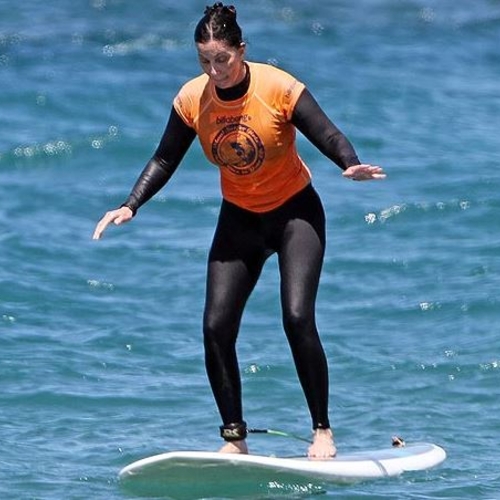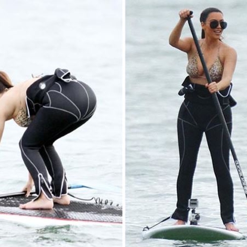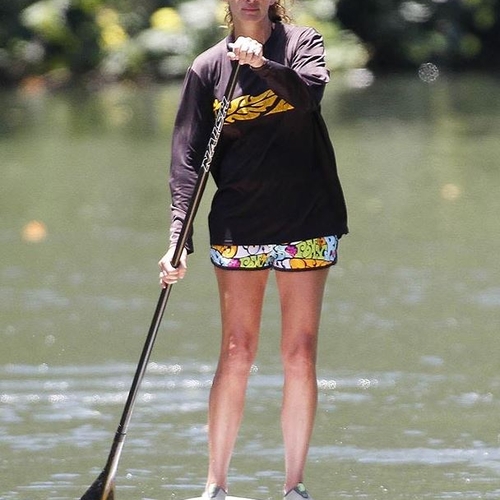 Красавице не интересны шезлонги и ленивые потягивания коктейлей. Она любит активный отдых. Поэтому звезда смело стала на доску и маневрирует морскими волнами.