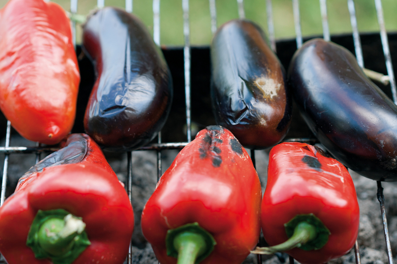 Кстати, баклажаны и большой перецможно не резать, а целиком положить на решетку. Дождись, пока обгорит шкурка и снимай – они будут сочными и мягкими. А также очень горячими, поэтому не обожгись.