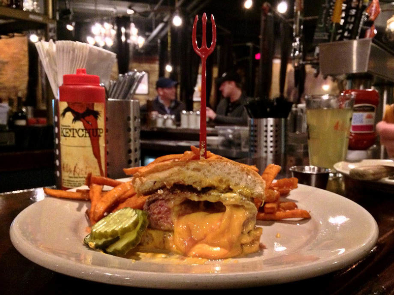 Самый вкусный ингредиент этого фастфуда – жирный кусок говядины, вместе с сыром вкусно запекаемый в домашнем масле. А самый адский ингредиент – желе из красного перца, благодаря которому этот бургер и заработал такое неангельское название