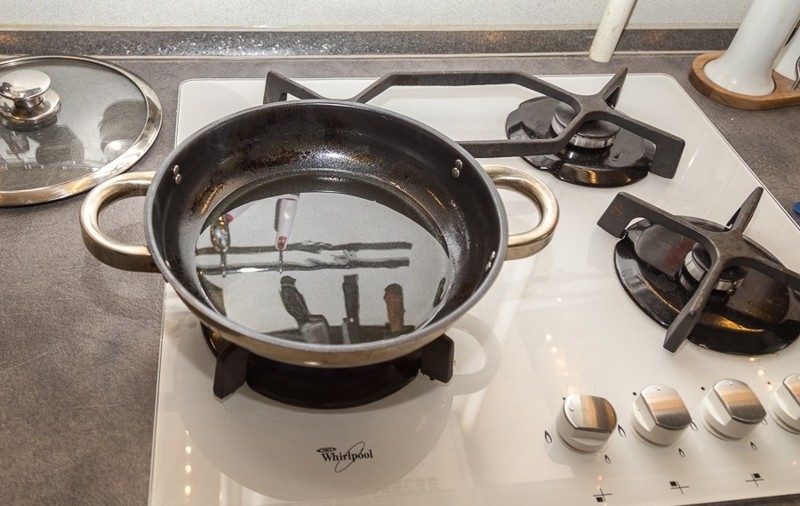 - стакан кипятка и сковорода с очень плотно прилегающей крышкой.
