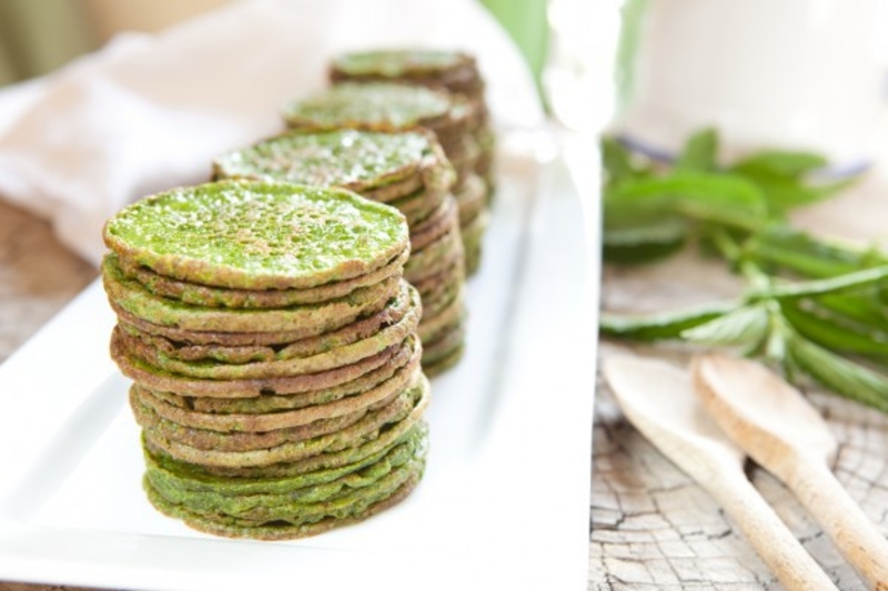 А это совсем несладкие постные оладьи. Зато они очень здоровые — спасибо шпинату.