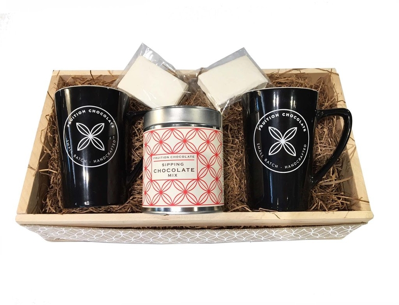 В комплекте — две чашки, банка отборного горячего шоколада, и бонус: пара воздушных маршмеллоу. Когда будешь заказывать, проси без кодинтерки, ибо компания-производитель находится в Нью-Йорке: пока набор доедет, маршмеллоу превратятся в сухари.