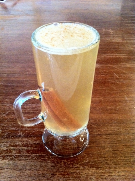 Хорошо разогреть стакан. Добавить в него все ингредиенты, затем положить масло. Сверху посыпать корицей.