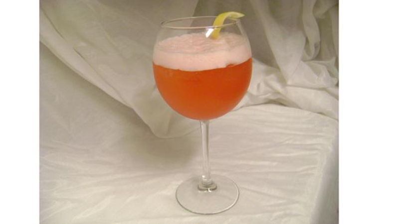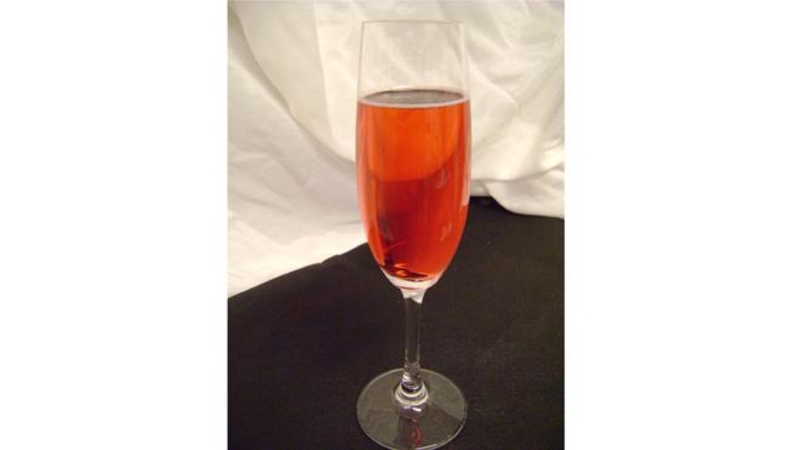 Взять тонкий бокал для шампанского (в виде флейты), заполнить его наполовину вином. Остальную половину заполнить клюквенным соком.