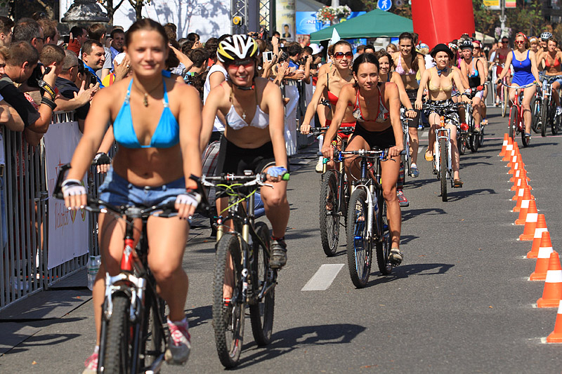 В эти выходные в столице проходило много интересных событий. Среди белого дня на центральной улице Киева, Крещатике, можно было увидеть необычный заезд велосипедисток. Дело в том, что девушки катались на велосипедах в бикини, пропагандируя здоровый образ жизни.
