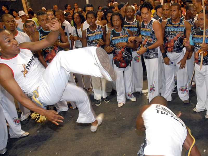 Капоэйра - бразильское боевое искусство. Оно сочетает в себе элементы танца, акробатики и игры, что зачастую вызывает насмешку скептиков, которые несерьезно относятся к капоэйре. Но в свое время оно считалась главным оружием бандитских группировок в Бразилии.