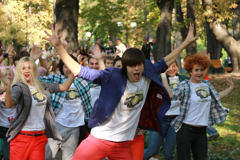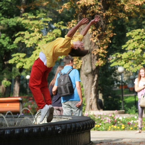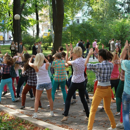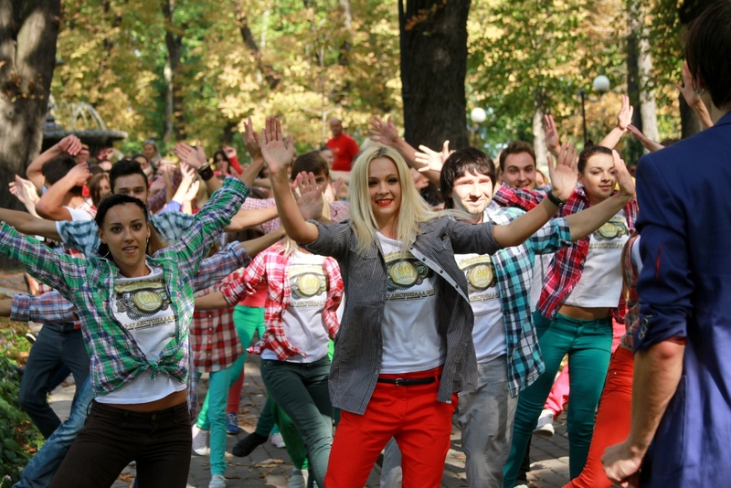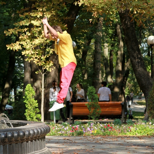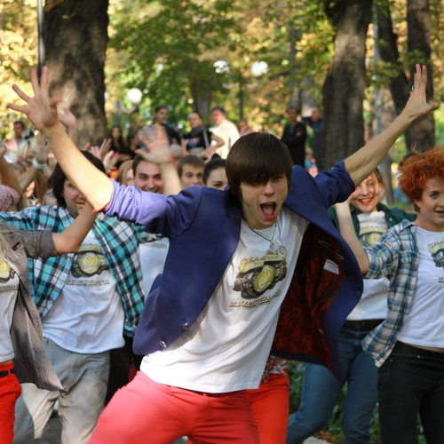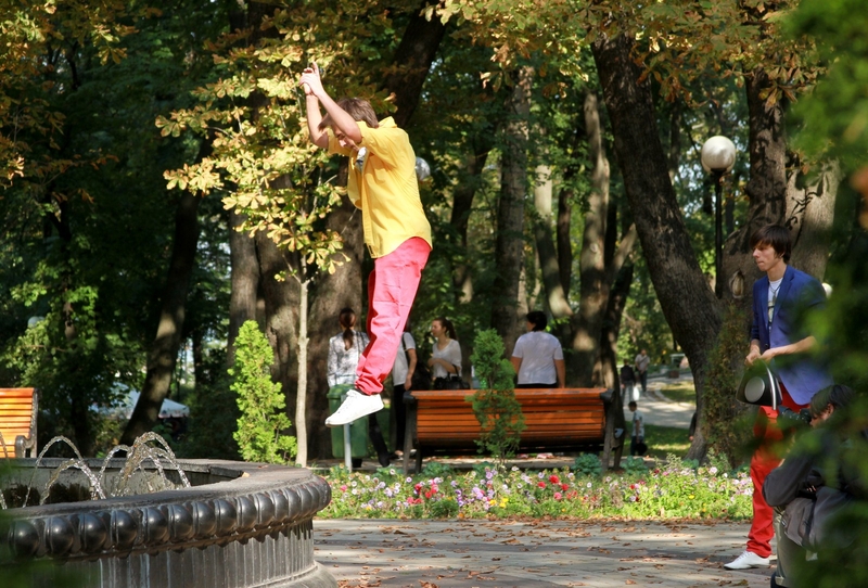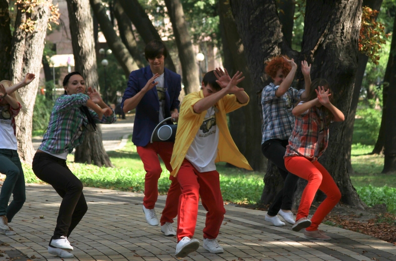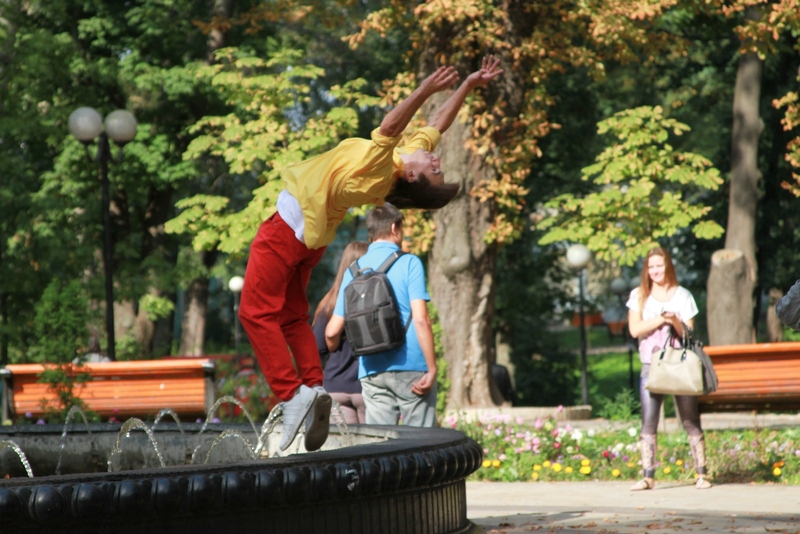 На одной из аллей парка развернулось интересное и захватывающее действо - первый в Украине PoleArt-флешмоб! Главное его отличие от обыденной танцевальной постановки - это участие в нем не только танцоров, но и акробатов, жонглеров, паркурщиков и pole-денсеров.