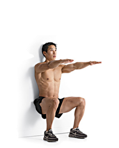 Тренировки для похудения: Приседания у стены - для мышц ног, тела, ягодиц и коленных сухожилий