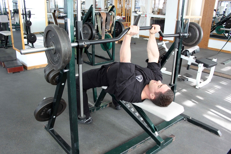 Слишком тяжелая штанга - одна из самых частых проблем, не дающих мужчинам накачать грудь. Передозировка рабочим весом концентрирует твое внимание на трицепсах и мышцах плеч вместо груди. Меллис рекомендует равномерно нагружать штангу блинами выполнять упражнение узким хватом. Таким образом будет качаться не только грудь, трицепсы и плечи, но и пресс.