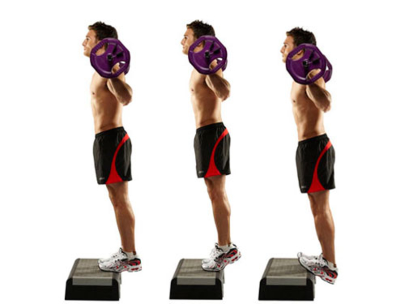 Как накачать икры? Со штангой на плечах становись на лавку (или другую возвышенность) и поднимайся на носочках. Нет штанги или можешь не удержать равновесие? Бери по гантели в каждую руку. Норма: 2 сета по 12 повторений. Примечание: поднимайся с упором как на внешнюю, так и на внутреннюю сторону стопы - для прокачки разных сторон икроножной мышцы.