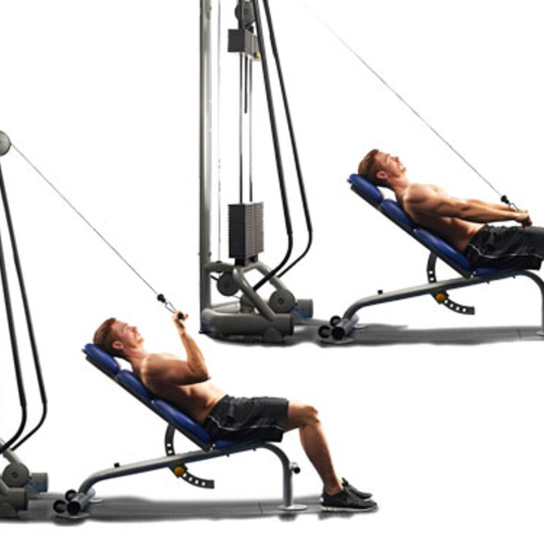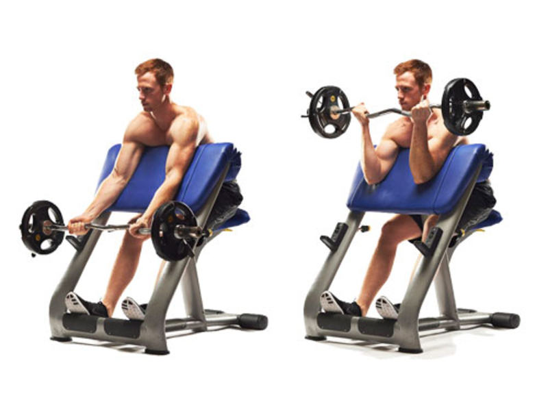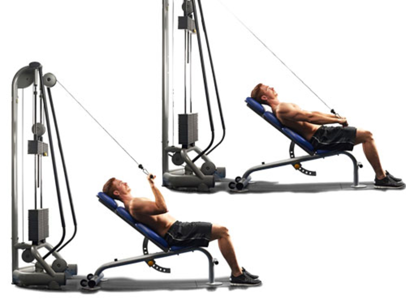 С этими движениями ты ускоришь ЧСС. Подними лавку на 30 градусов и сконцентрируйся на движении предплечий к бицепсам. Таким образом и руки прокачаешь, и кровь погоняешь.