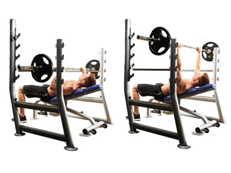 Упражняйся с большим рабочим весом на тренажере Смита. Лавку подними на высоту 30 градусов. Снаряд опускать рекомендуется медленно. Эффект от такого можно сравнить со стаканом холодной воды, вылитым тебе в лицо. Или Мерлин Монро, внезапно оказавшейся в твоей постели.