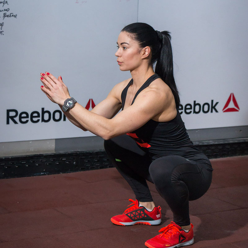 • приседай, отводя таз назад, колени разводи в стороны, грудь подымай вверх;