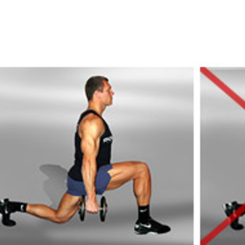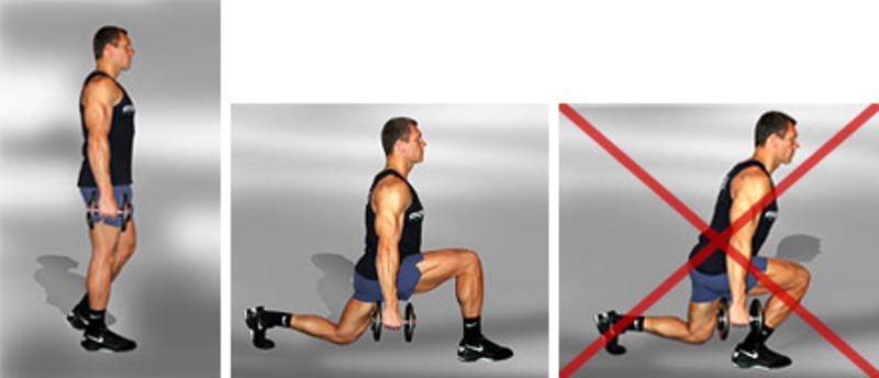 Держа гантели в руках (спина ровная и вертикальная), сделай большой шаг вперед и приседай на переднюю ногу, пока она не образует в колене прямой угол. Вернись в стартовую позицию. Сначала выполни повторы для одной ноги, потом для другой. Упражнение дополняет предыдущие приседания, развивая ягодичные мышцы и бедра.