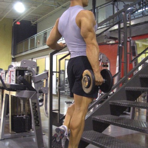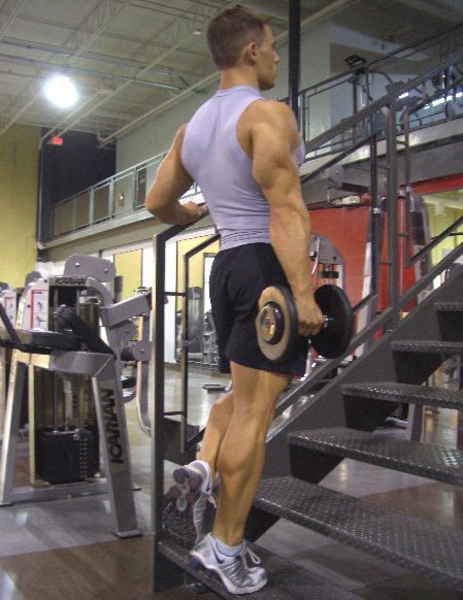 Упражнение хорошо развивает голени. Если вес гантелей недостаточно высок, можно просто увеличить количество повторений – здесь это как раз не грех, как, например, в базовых силовых упражнениях.