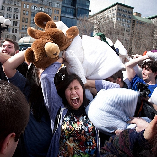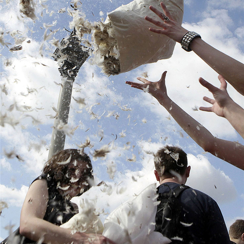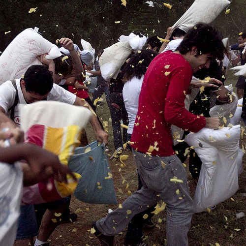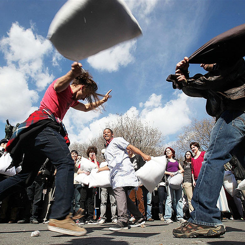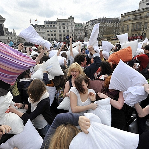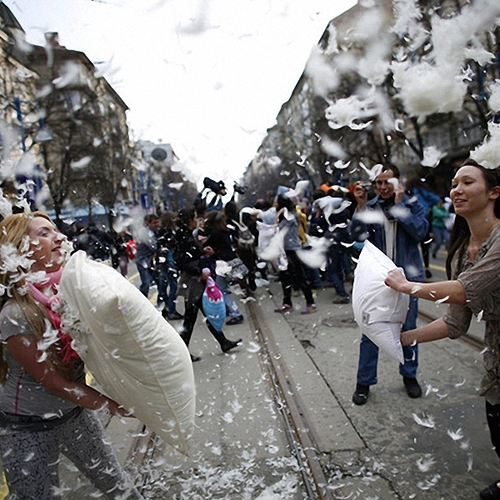 Тысячи жителей Бразилии, Венгрии, США, Британии и других стран, вооружившись парой подушек, вышли на улицы родных городов, дабы отметелить первого встречного: так прошли традиционные весенние битвы – своеобразный подушечный флешмоб.