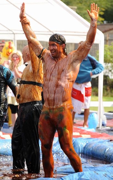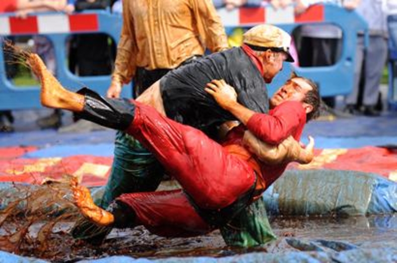 Да-да, это знаменитый чемпионат World Gravy Wrestling, который проходит в Британии уже пятый раз подряд. В этом году турнир состоялся 30 августа. Обычно дело идет так: соперников запускают в лохань с мясным соком - а там выживает сильнейший.