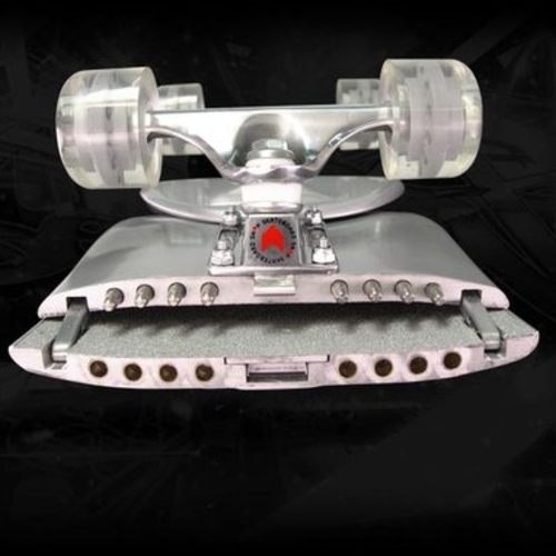 Скейтборд сделан из высококачественного авиационного алюминия и состоит из трех частей, соединенных между собой специальными петлями и штырями. Весит такое чудо около двух килограммов - всего ничего для твоего походного рюкзака: