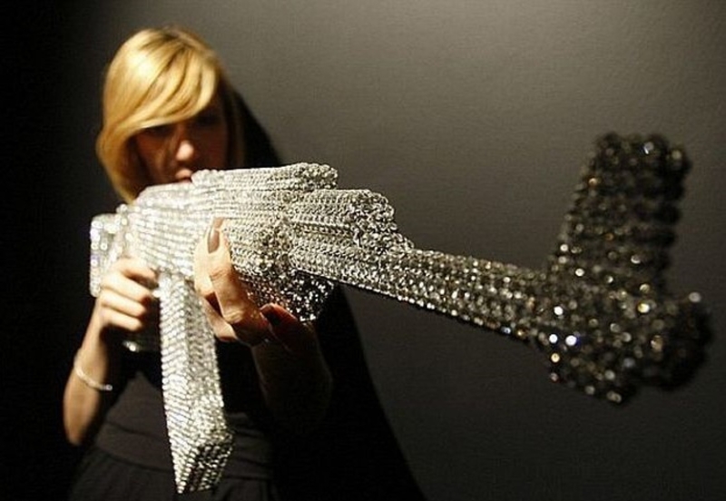 Золотой АК - полбеды. А вот то, что знаменитое оружие превратили в гламурный автомат, уже пугает. Хорошо, что хоть в руках оно, похоже, у симпатичной барышни.