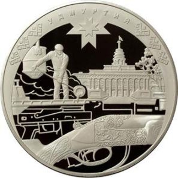 Центральный банк России решил подготовиться к 450-й годовщине вхождения Удмуртии в состав Российской Федерации. Поэтому выпустил юбилейные монеты номиналом в 100 рублей с изображением АК.