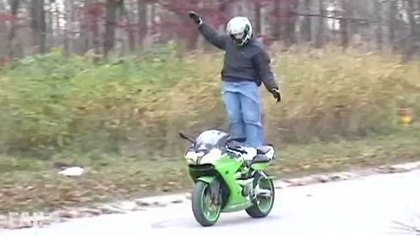 Дарвин Light: Обливание водой и падение с мотоцикла (видео)