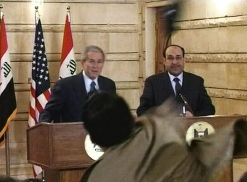 14-го декабря в 2008-м на пресс-конференции в Багдаде находящийся в третьем ряду Мунтазар аль-Зейди (корреспондент египетского телеканала Аль-Багдадиа) во время выступления 43-го президента США Джорджа Буша внезапно поднялся со своего места и сказал: