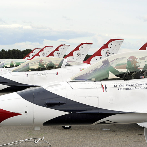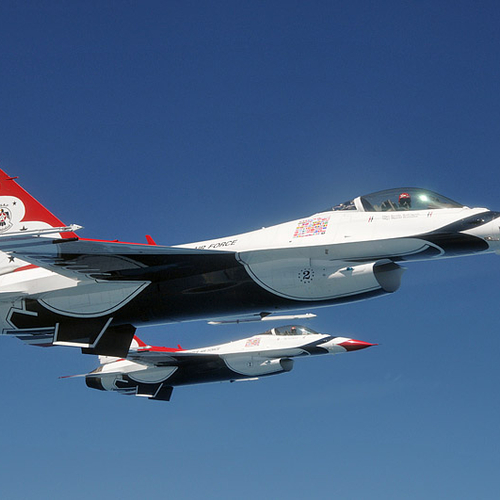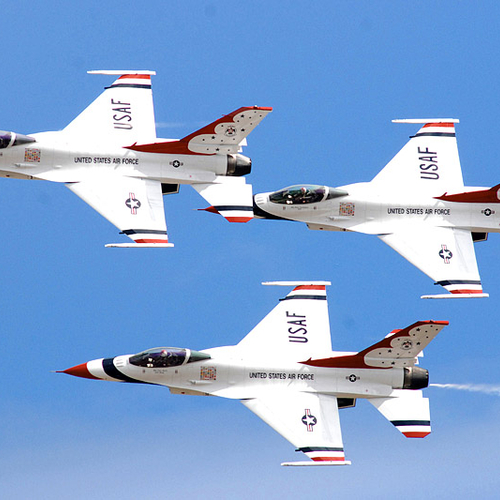 Thunderbirds, также известные как "Буревестники", - специальное летное подразделение ВВС США, которое участвует в авиационных представлениях на специально окрашенных реактивных самолетах.