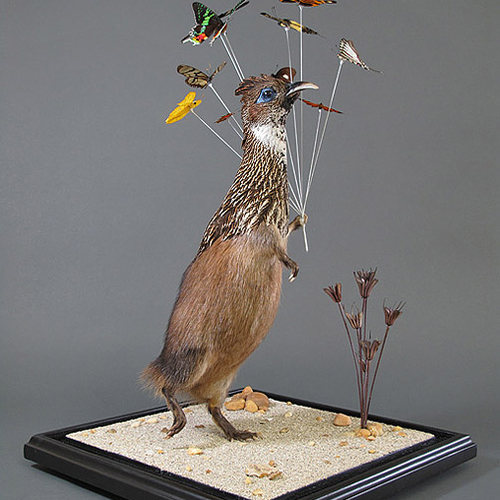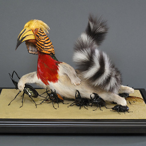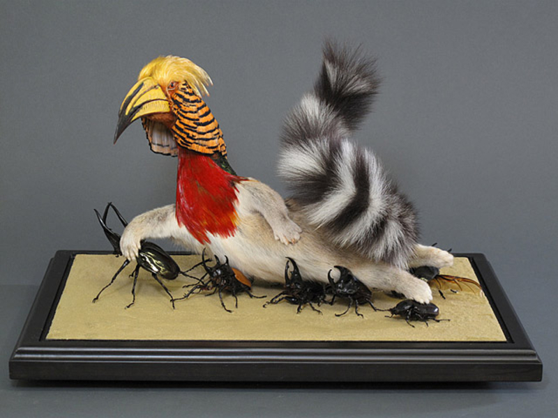 Автор расчленяет трупы животных и затем создает из нескольких видов совершенно безумные гибриды. Прийти к такому занятию де Молине помог отец - известный таксидермист.