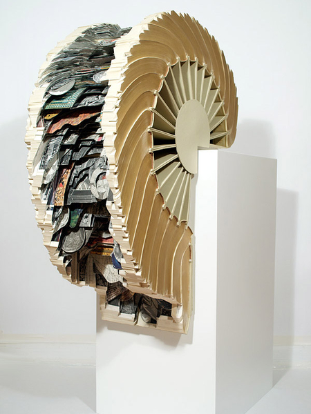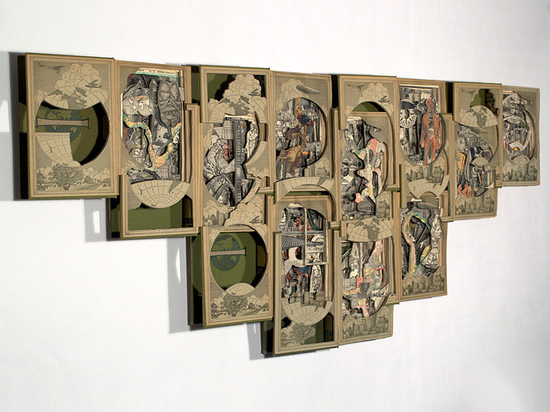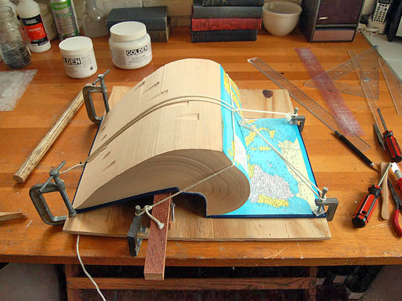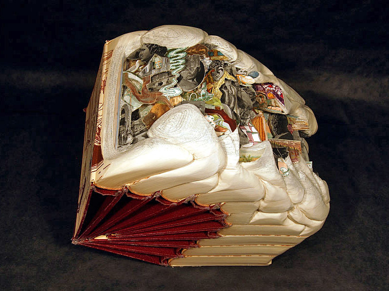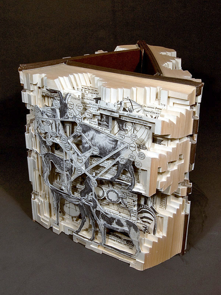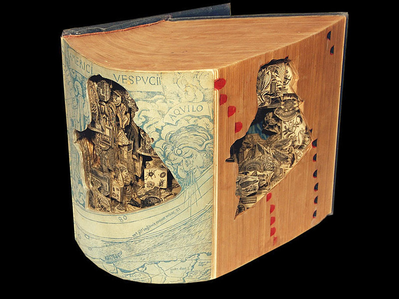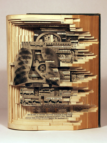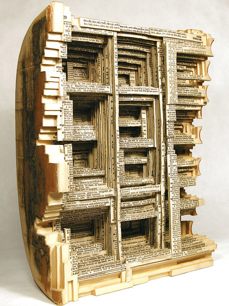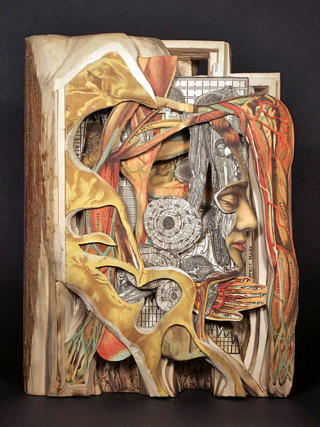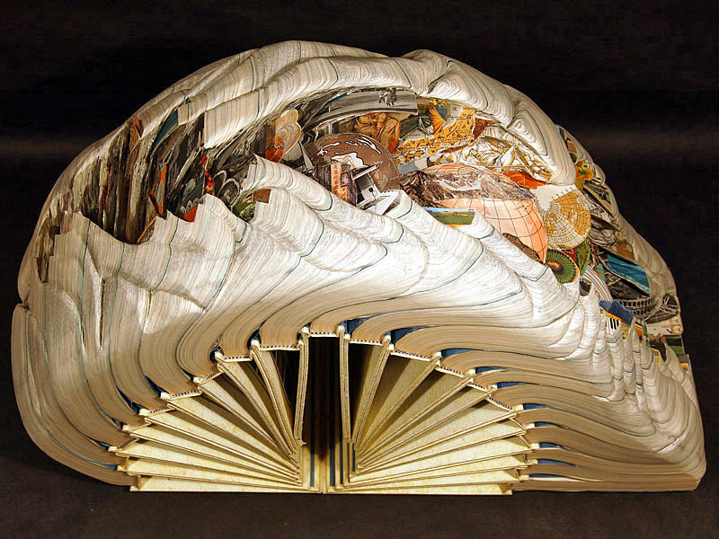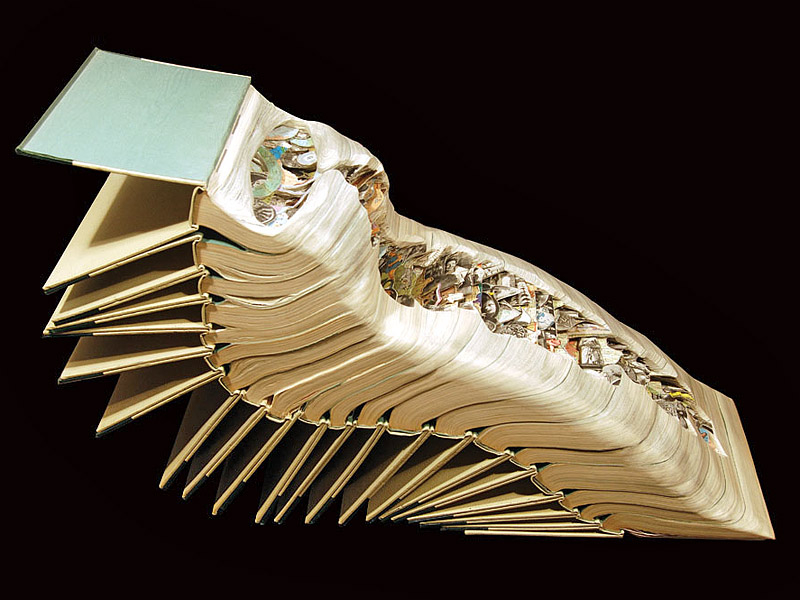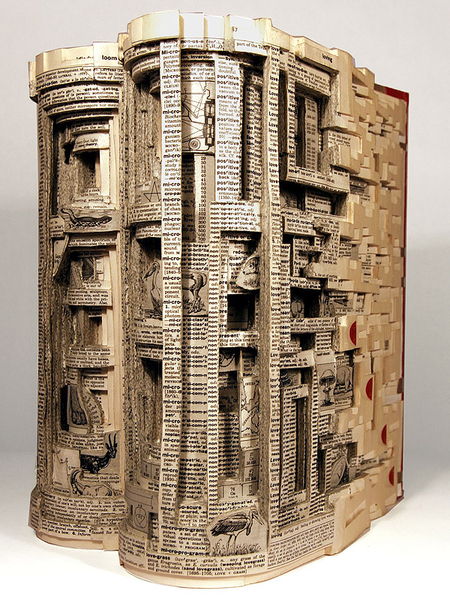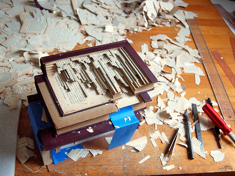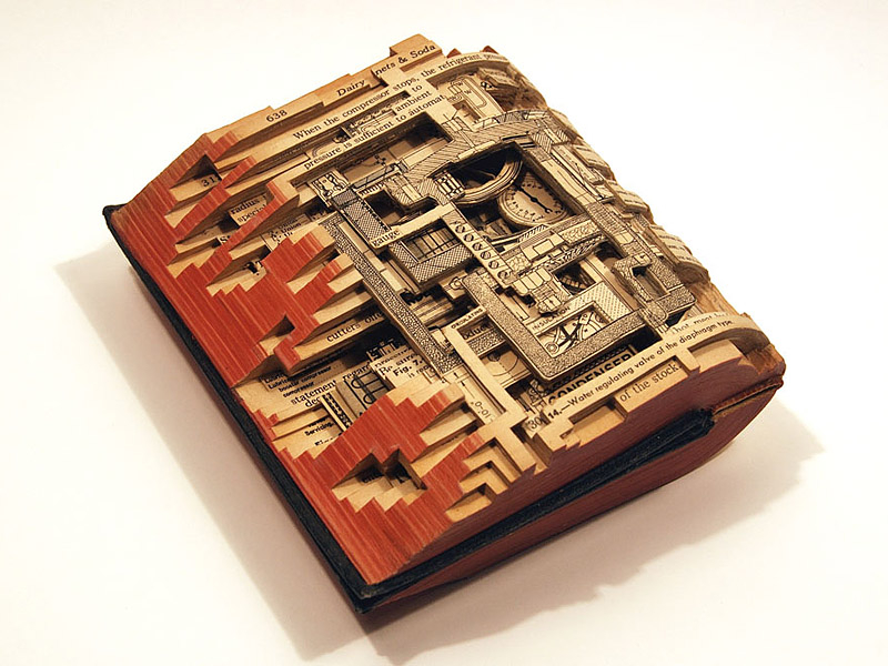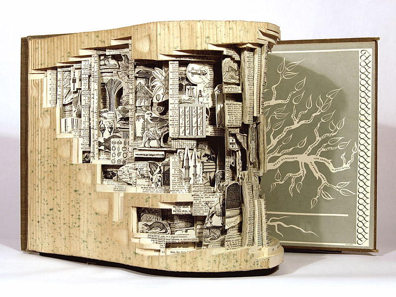 Автором этих удивительных произведений искусства является современный художник Брайан Деттмер из Чикаго. С помощью ножа, щипцов и хирургических интрументов он расслаивает книги, превращая их в шедевры.