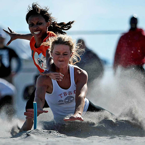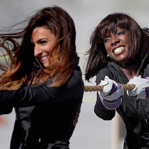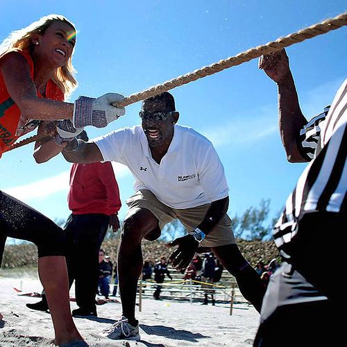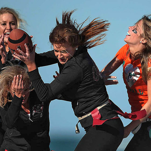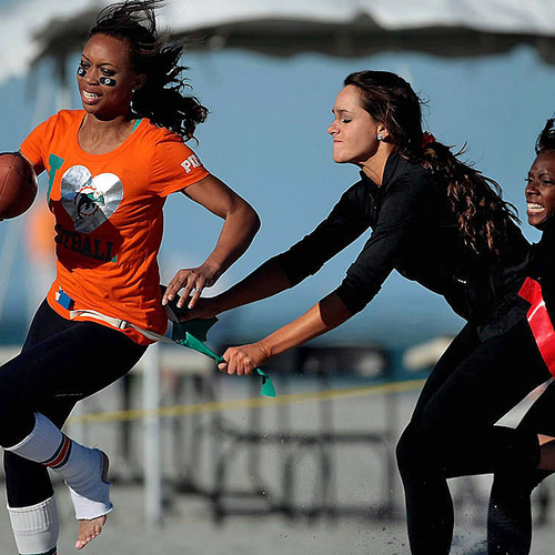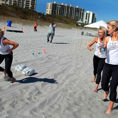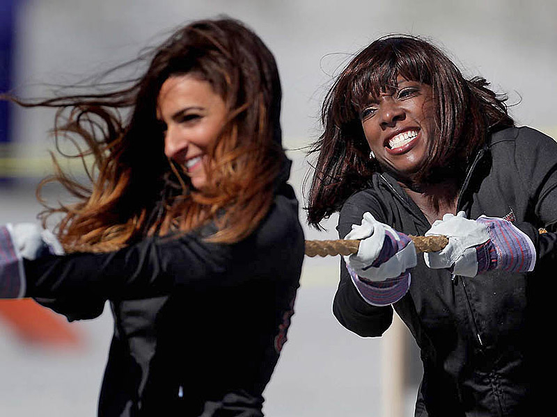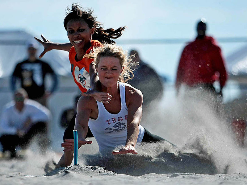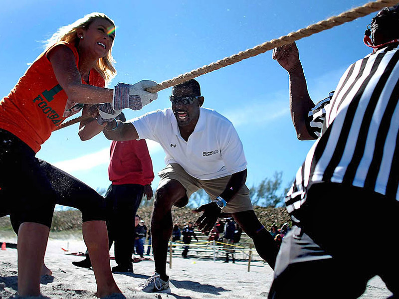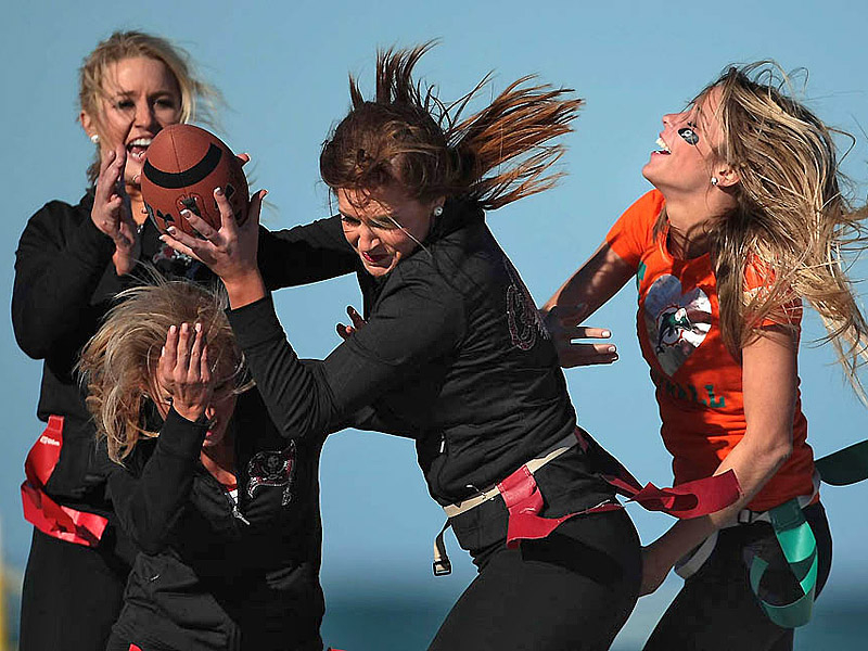 Но совсем недавно группы поддержки команд "Miami Dolphins" и "Tampa Bay Buccaneers" вышли за пределы поля и сразились между собой на пляже во Флориде. В программу соревнований входили волейбол, флаг-футбол, перетягивание каната и бег с препятствиями.