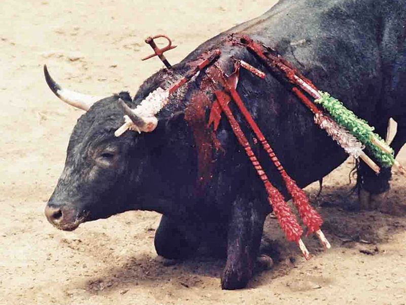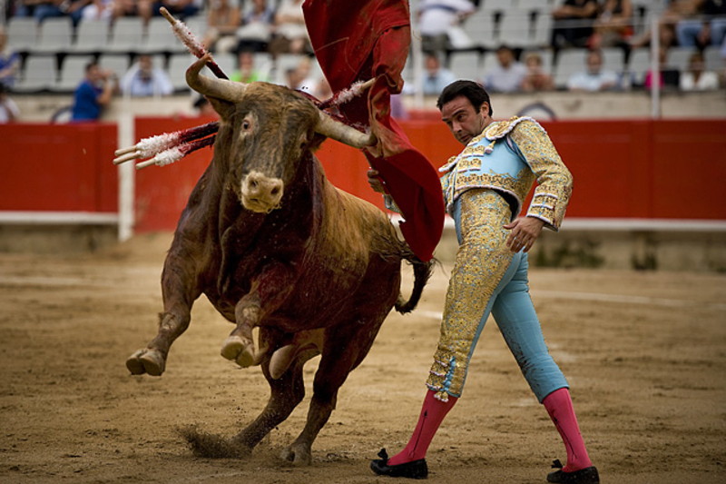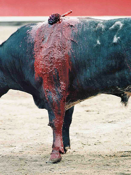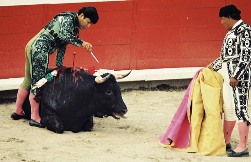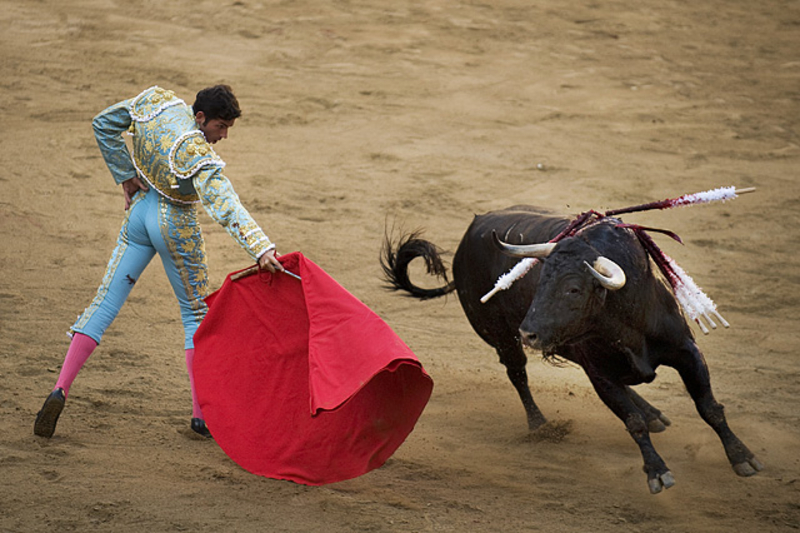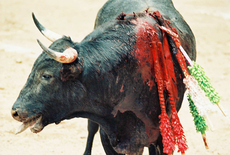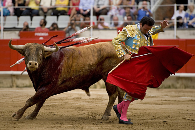 Коррида состоит из трех терций - терции пик, терции бандерилий и терции смерти. В последней части матадор или тореро сначала "дразнит" быка с помощью мулеты, специального красного плаща, а затем наносит решающий смертельный удар обессиленому зверю.