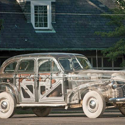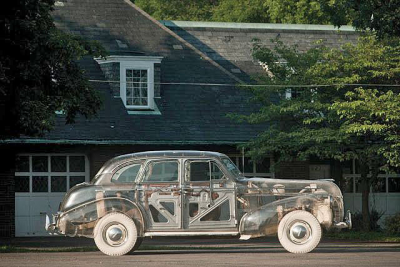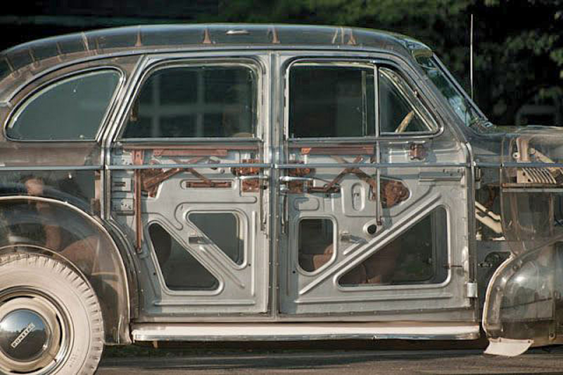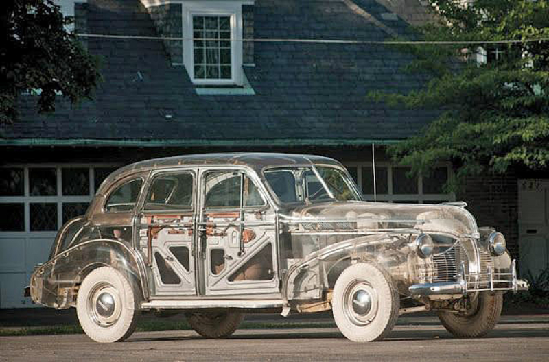 Дело в том, что Pontiac Deluxe Six, именно так называлась машина, изготовлен из плексигласа, и его кузов является полностью прозрачным.