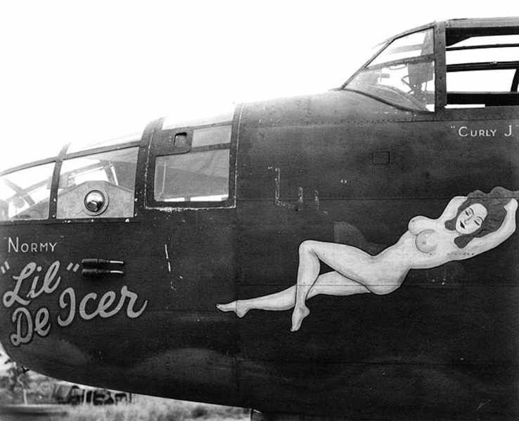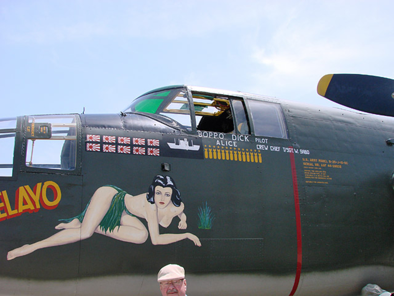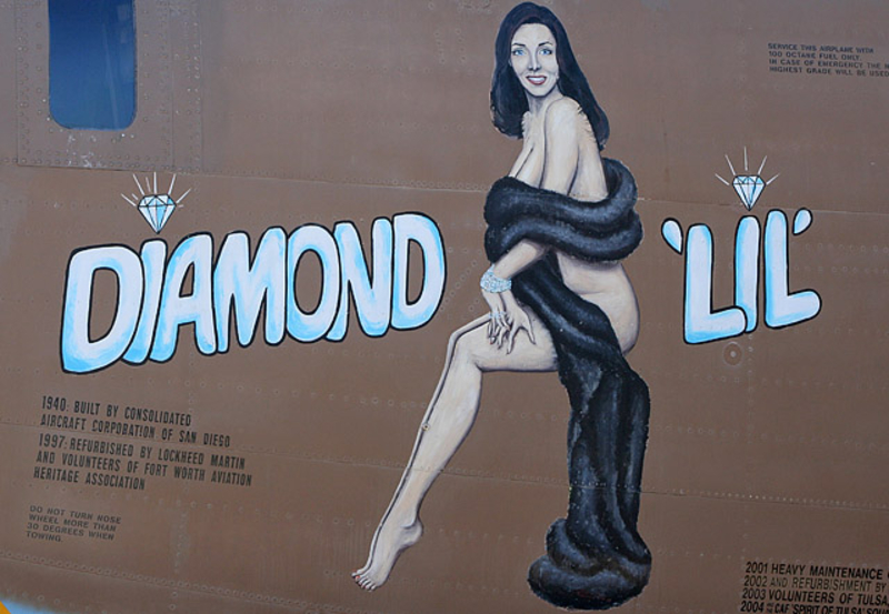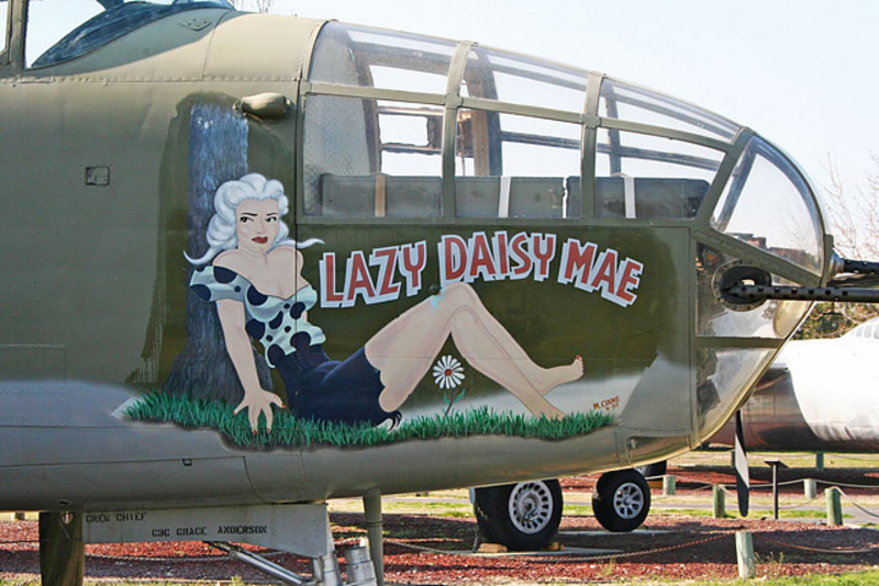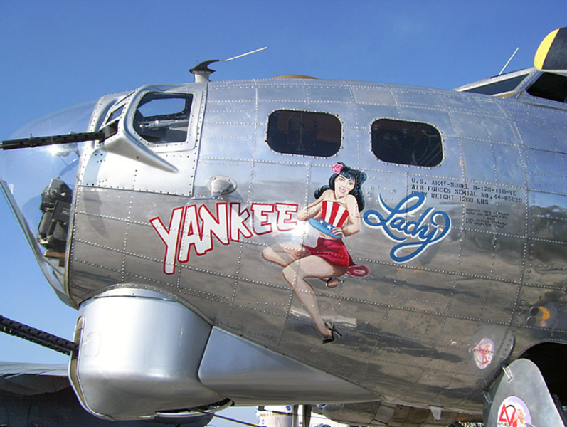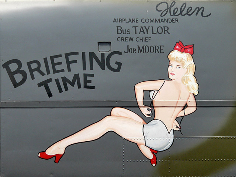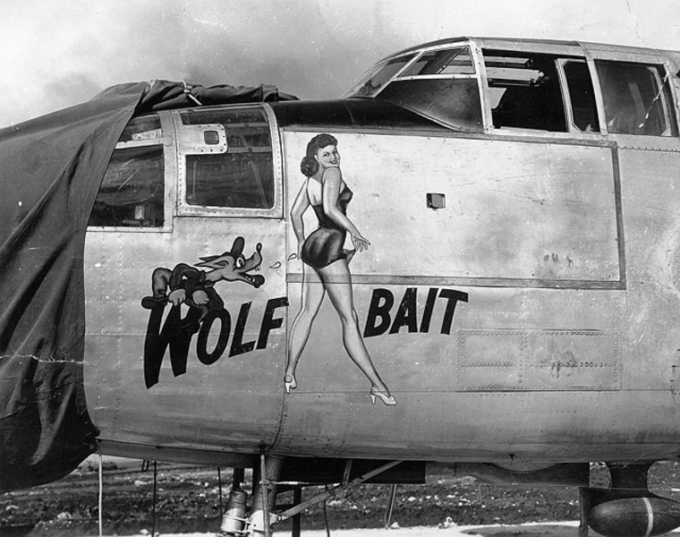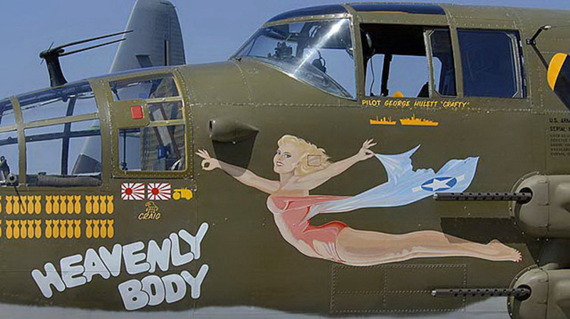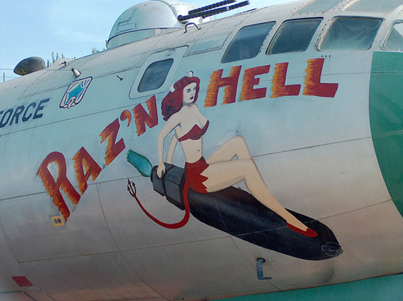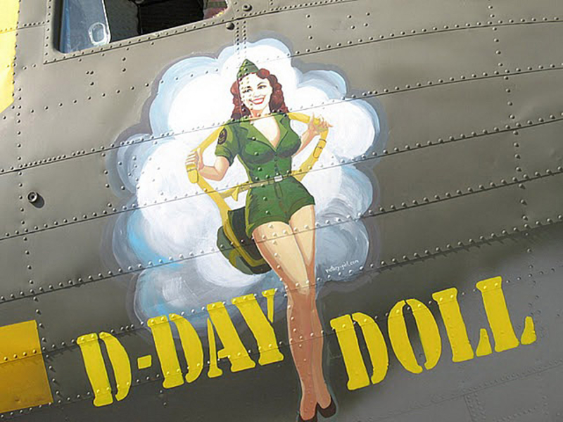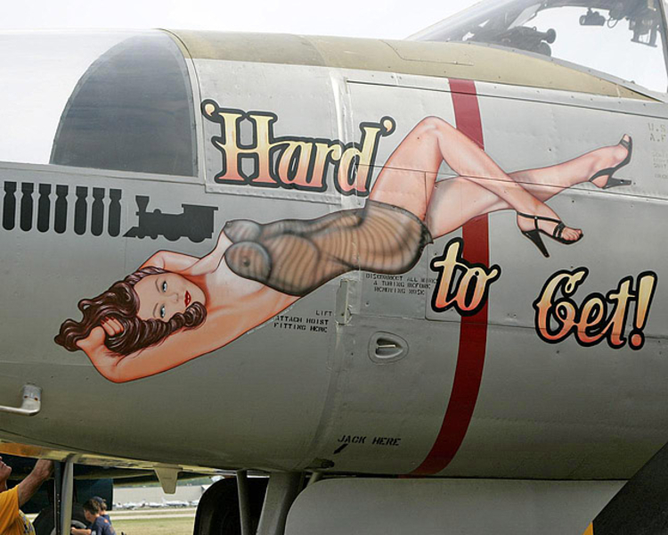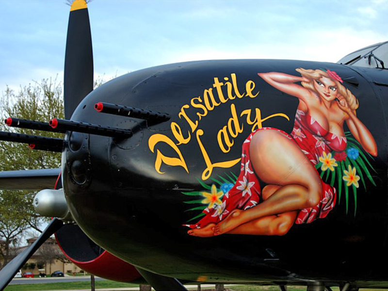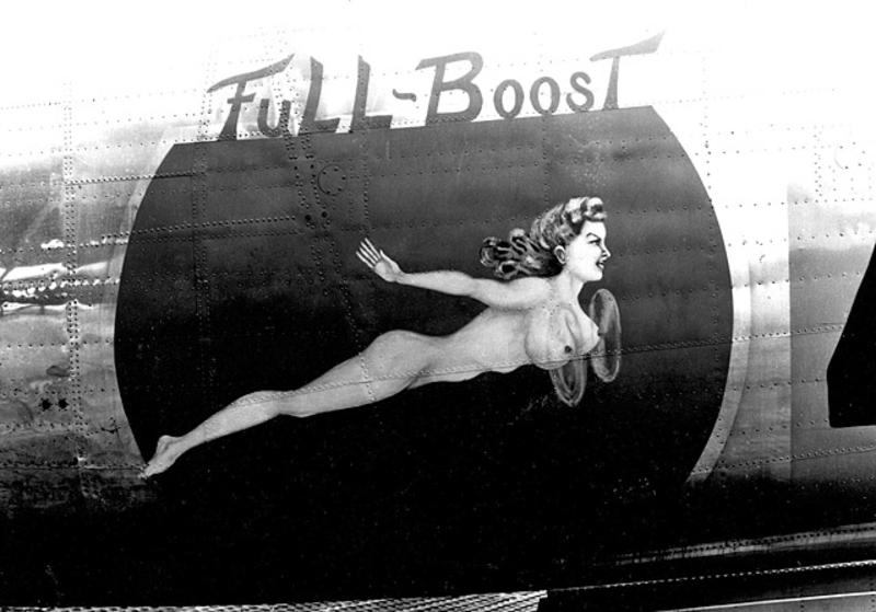 В годы Второй мировой войны живопись на фюзеляже заметно разнообразилась, появились дарственные надписи, пропагандистские лозунги... Но кроме этого корпуса самолетов использовались и для рисования менее серьезных персонажей, к примеру мультяшных героев. Не обошлось и без оголенных красоток в стиле Pin Up. Особую популярность последние получили в американской авиации.